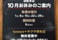 皆様 いつもうどん土佐屋をご愛顧いただき誠にありがとうございます。 9月の深井店の営業予定日は下記になります。 9月の深井店は、通常通り水曜定休日と臨時休業として、25日(木)の夜の部 にお休みをいただきます。ご不便をおかけいたしますが、ご理解のほどよろしくお願いいたします。 新店舗のtosaya+キクヤ堺本店は休みなく営業しております。 まだまだ暑い日が続きます、、、たくさん食べて暑さに負けないように体力をつけていきましょう! 皆さまのご来店お待ちしております。
